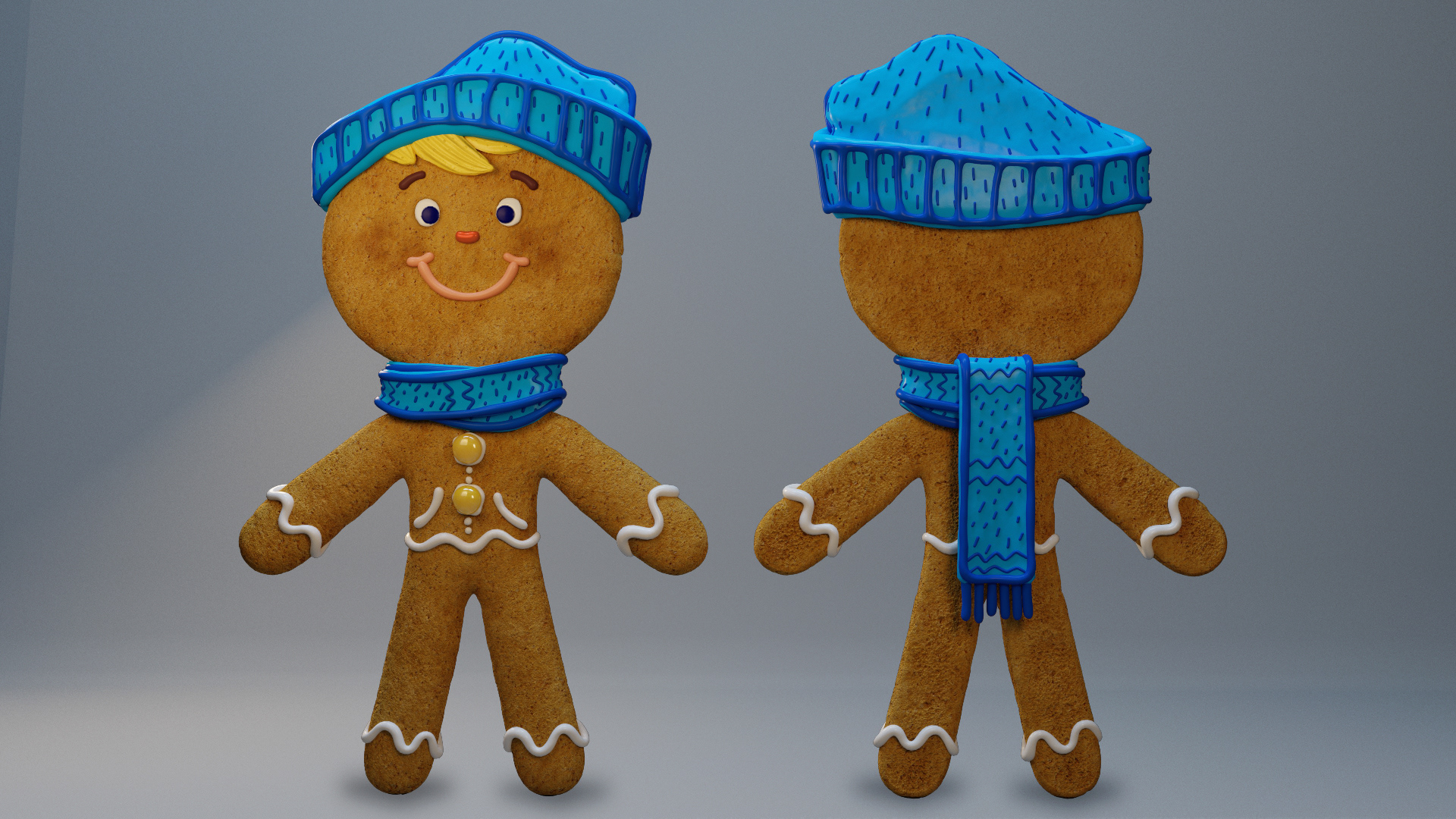 It was also hugely important for us to explore and push the boundaries of a "gingerbread man" design. We didn't want to make a cliche character, but some of the core elements have to be there for them to read like a classic cookie.